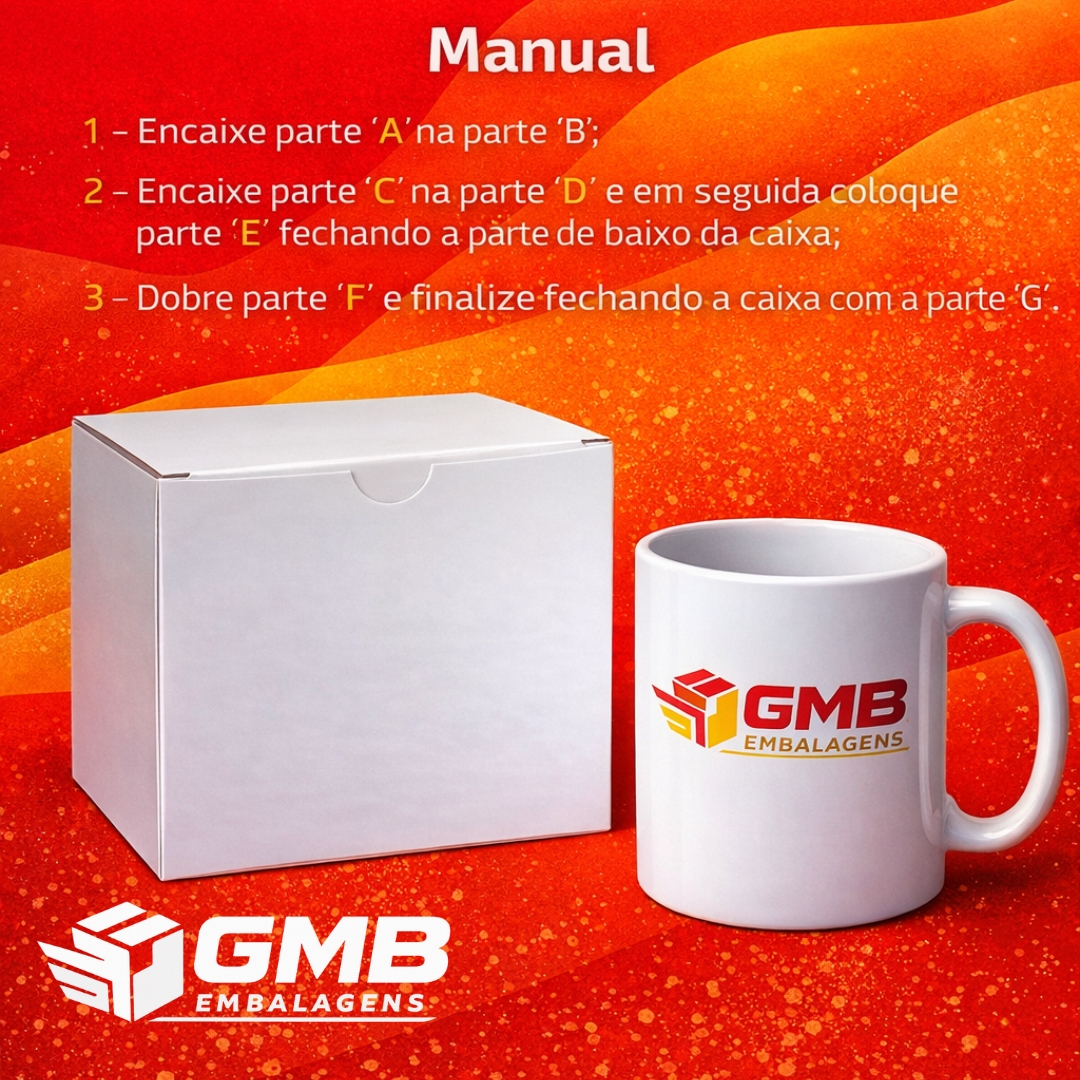 100  Caixa para canecas 325ml Tamanho 11 x 11 x 9,5 Breve descrição do produto: A caixa pode ser montada sem uso de cola com encaixe simples e seguro Material ideal para sublimação. Aproveite para personalizar você mesmo. Nossos produtos são revisados antes de serem embalados. -Formato: Montável, Tampa fixa, Fácil Montagem -Cor: Papel Branco SEM RESINA -Gramatura: 250 gramas -Estado: Novo -As caixas são enviadas desmontadas para reduzir o volume da embalagem.