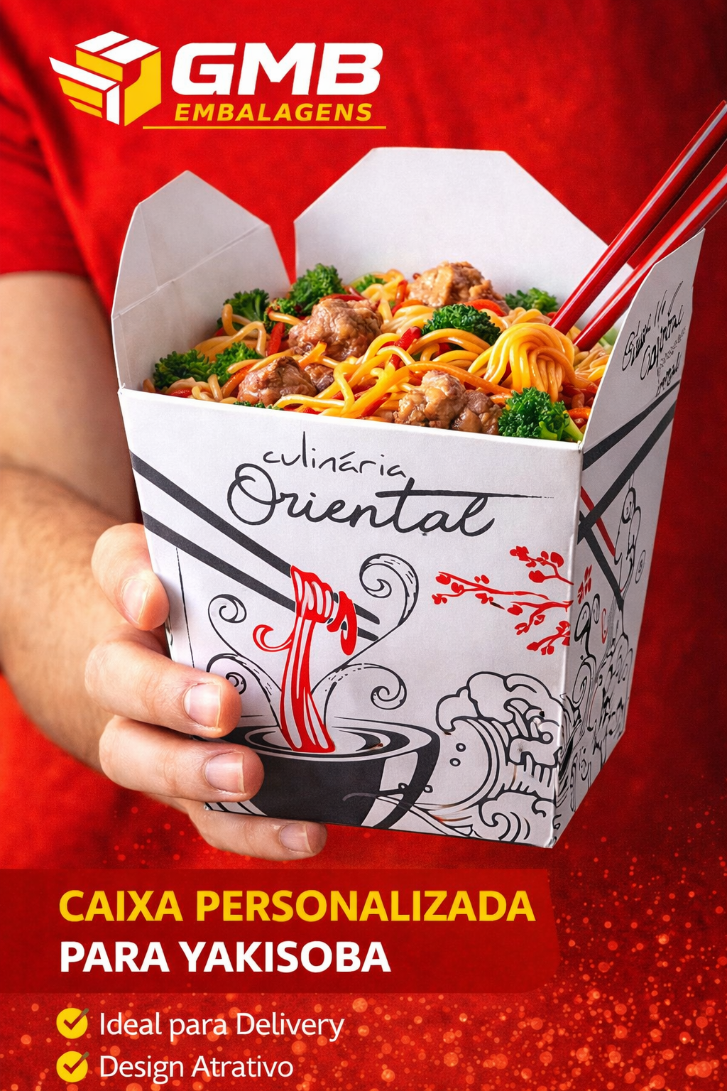 Embalagem Caixa Box Comida Chinesa Yakisoba Delivery – 100un – 850ml